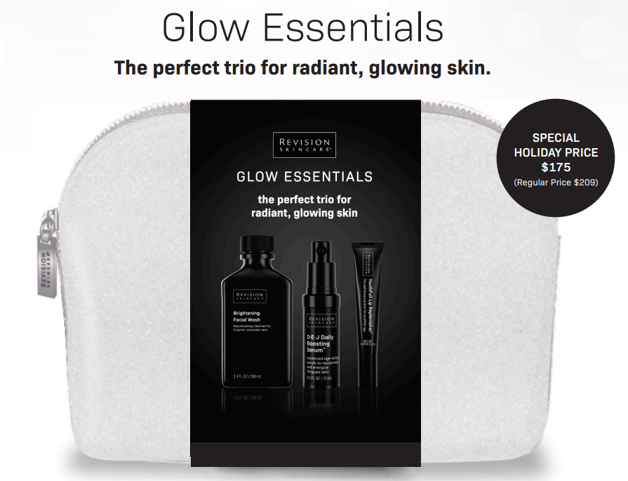 Perfect as a gift for a friend or a holiday pick-me-up for yourself, Revision Skincare's Glow Essentials is the perfect way to brighten your skin and your day.